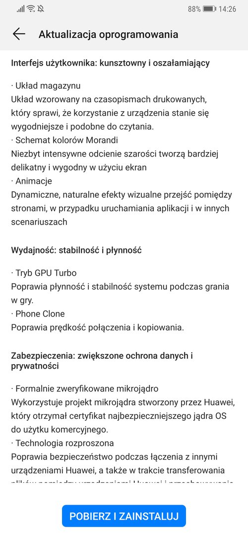 Spośród najważniejszych zmian EMUI 10 należy wyróżnić nowy układ aplikacji systemowych, paletę kolorów Morandi opierającą się na zgaszonych, ale eleganckich barwach, odmienione animacje, tryb GPU Turbo w wersji 3.0 oraz większą ochronę danych i podwyższone bezpieczeństwo prywatności. Pozostałą część zmian znajdziecie powyżej.
