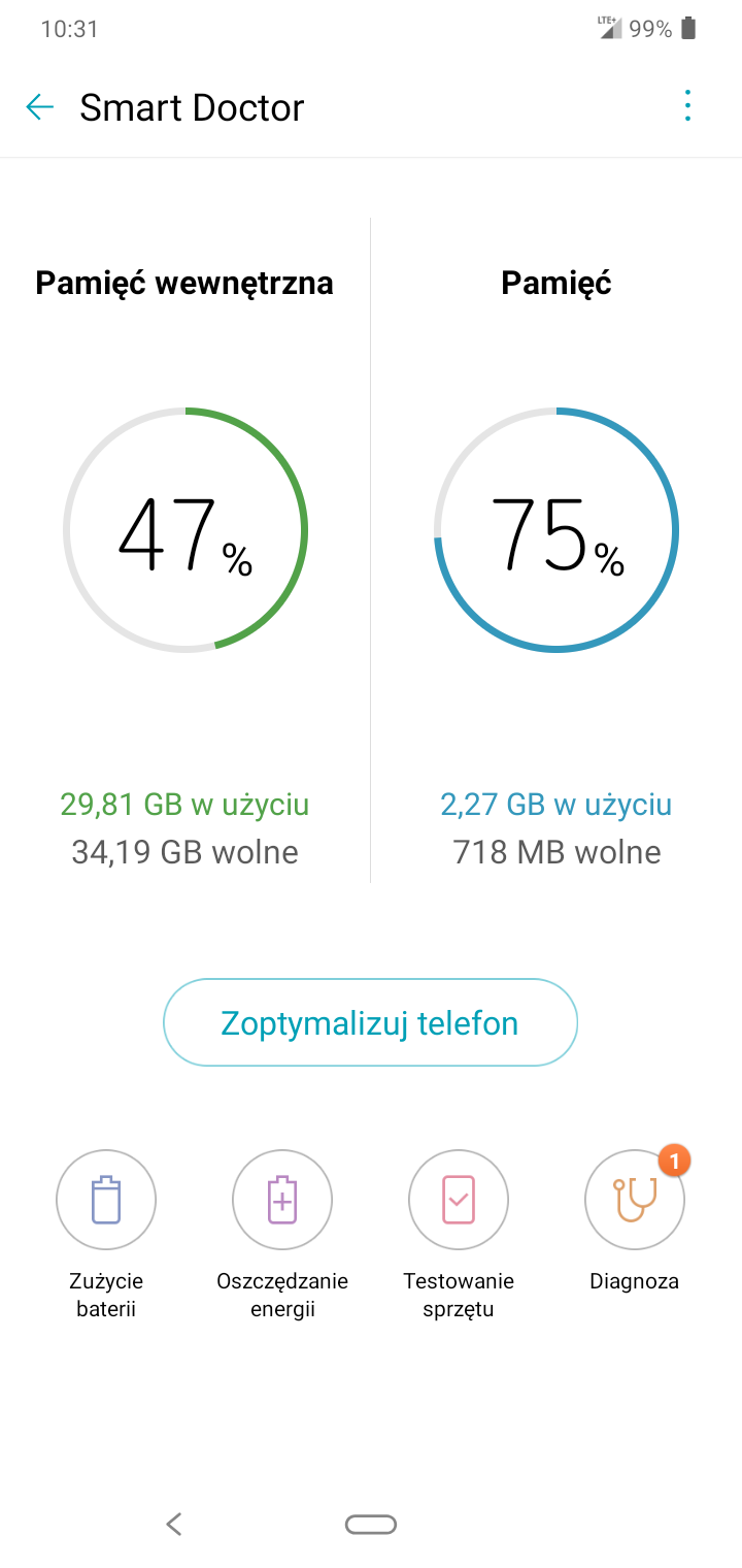 Jest także Smart Doctor, czyli oprogramowanie zawierające zestaw narzędzi maksymalizujących wydajność urządzenia. Z poziomu programu możemy zamykać otwarte procesy, a także usuwać zbędne pliki i przeprowadzać diagnostykę. Całość została przedstawiona w przystępnej formie.