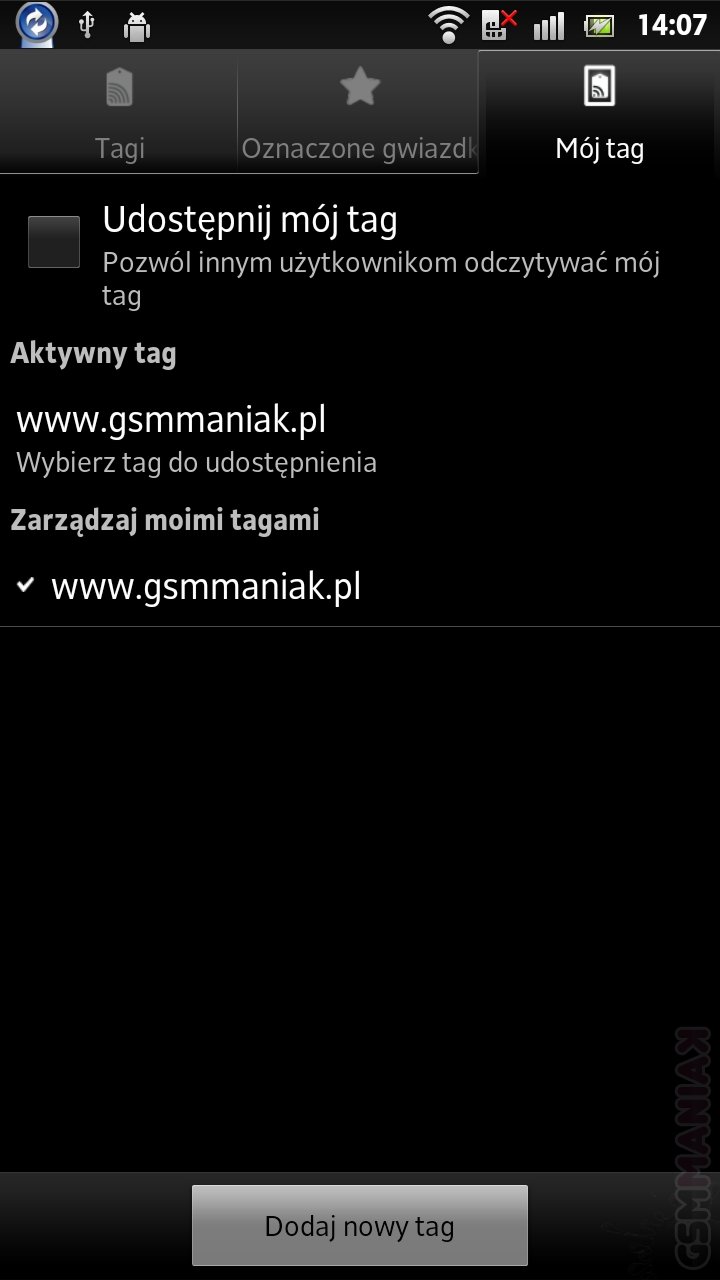 Zaprezentowane podczas konferencji Sony w Barcelonie. Moim zdaniem to pieśń przyszłości, ponieważ mało kto z Was będzie korzystał z tej funkcji. Można stworzyć trzy główne rodzaje TAGów: kontakt, adres URL oraz tekst a następnie za pomocą komunikacji NFC wysłać taki TAG Waszemu znajomemu, jeśli ten oczywiście posiada smartfona korzystającego z dobrodziejstw technologii NFC. Za rok to będzie hit, obecnie mamy do czynienia z fajnym bajerem.