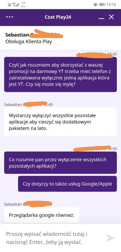 Niektórzy użytkownicy zauważyli, że mimo przystąpienia do promocji, pakiet danych za korzystanie z YouTube pobiera się z puli podstawowej, a nie promocyjnej. Jeden z nich zapytał konsultanta Play, dlaczego tak się dzieje. Odpowiedź Was zaskoczy.