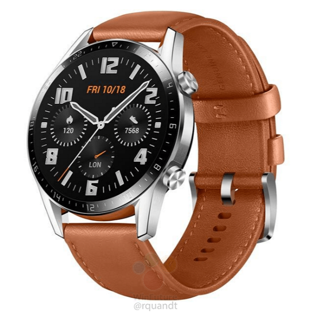 Huawei Watch GT 2 prezentuje się na grafikach prasowych. To piękny, elegancki i uniwersalny smartwatch, którego równie dobrze można założyć do garnituru, co przebiec z nim maraton.