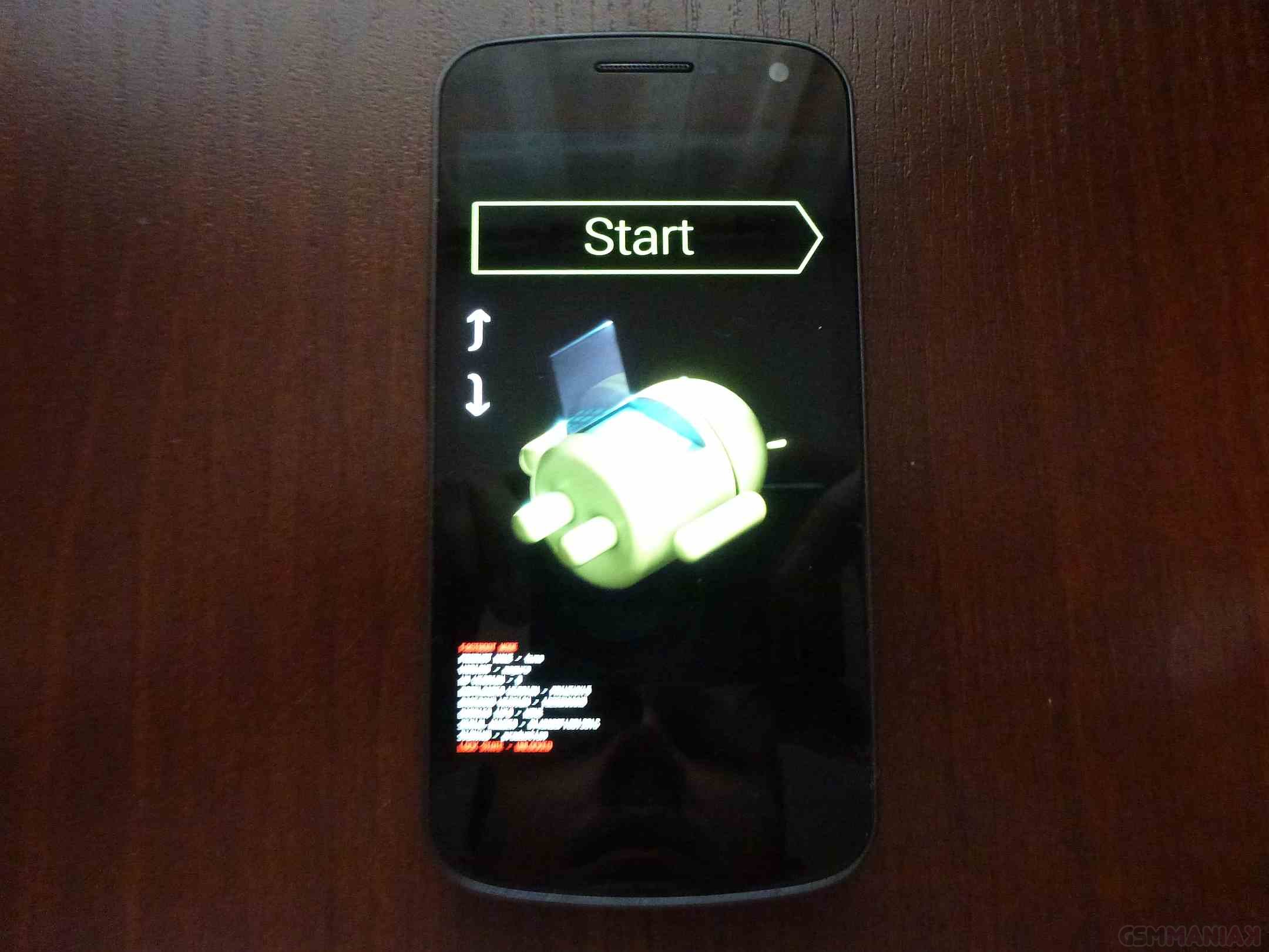 Znowu trzymamy dwa przyciski regulacji głośności jednocześnie i wciskamy power. Przywita nas ta sama ikonka Androida z otwartym brzuszkiem. Na czerwono cały czas będzie podświetlony napis „Lock State”. Odpalamy raz jeszcze Galaxy Nexus Toolkit, tym razem musimy pamiętać, że mamy inną (nowszą) wersję Androida, dlatego w menu wyboru klikamy cyferkę 3 i zatwierdzamy enterem.