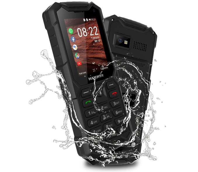 Telefon ma wytrzymałą obudowę o nietuzinkowym kształcie. Krawędzie modelu wzmacniają detale wykonane ze stali. W celu uszczelnienia postawiono na zaślepki złącza mini-jack 3.5mm, a także portu microUSB. HAMMER 5 Smart jest zatem pyłoszczelny i wodoodporny – wytrzyma zanurzenie na głębokości do 150 centymetrów, ale nie dłużej niż przez 30 minut. Do tego jeszcze wzmocniona konstrukcja to obietnica odporności na upadki z wysokości do 120 cm.