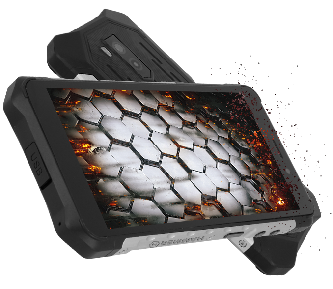 Podzespoły zostały zamknięte w obudowie o wymiarach 158 x 77,4 x 13,85 mm i wadze 234 gramów, która wykonana została z połączenia tworzywa sztucznego, metalu i gumy. Podobnie, jak klasyk powyżej, HAMMER Iron 3 spełnia normy standardu IP68 i jest odporny na upadki (do 1.2 m).