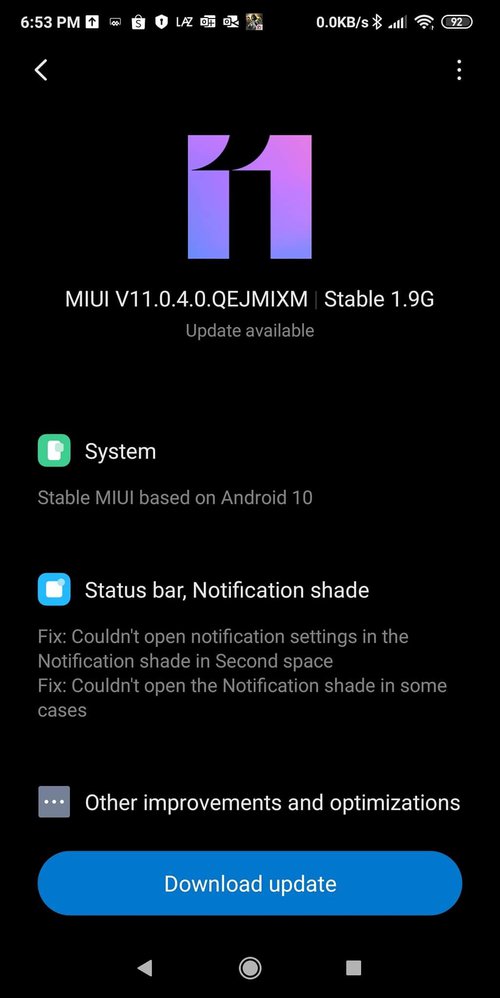 Aktualizacja została oznaczona numerem 11.0.4.0QEJMIXM i waży około 1,9 GB. Oprócz Androida 10 i nowego interfejsu na pokładzie znalazły się bieżące poprawki bezpieczeństwa ze stycznia.