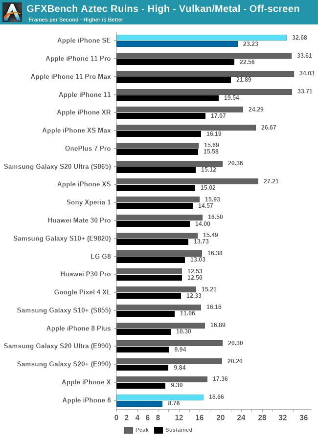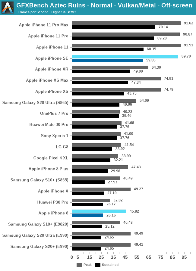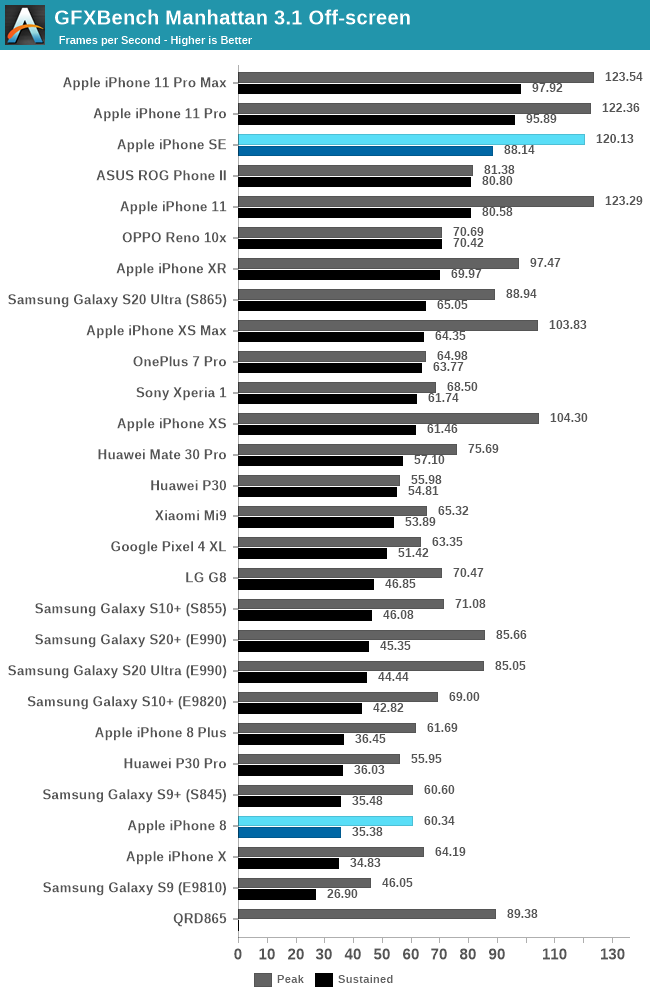 Ekipa Anadtech wzięła na tapet nowego iPhone’a SE i zestawiła go w benchmarkach z flagową konkurencją. Wspomniany smartfon musiał zmierzyć się z modelami takimi jak Samsung Galaxy S20 Ultra, Sony Xperia 1, Google Pixel 4, Huawei P30 Pro oraz LG G8. Lista „konkurentów” jest oczywiście dłuższa i znajdują się w niej wszystkie ubiegłoroczne oraz niektóre wcześniejsze iPhone’y. Jak poradził sobie nasz „maluch”? Okazuje się, że nad wyraz dobrze.