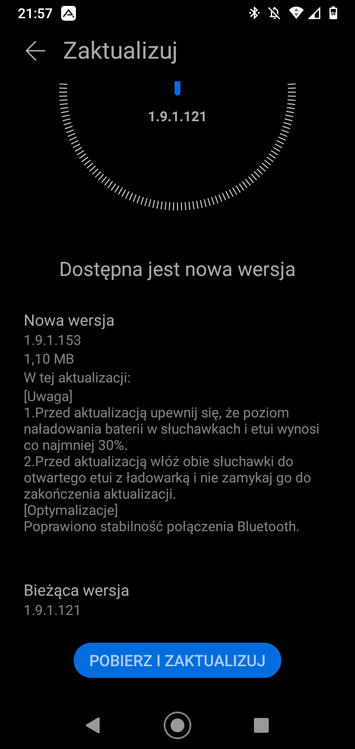 Na szczęście już przy pierwszym uruchomieniu aplikacji AI Life, z którą sparujemy słuchawki, proponuje ona niewielką (mniej niż 2 MB) aktualkę, rozwiązującą ten problem.