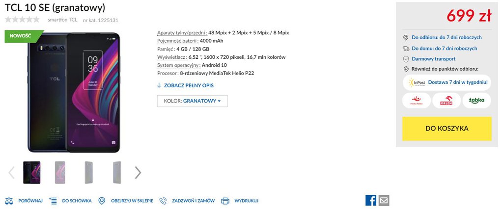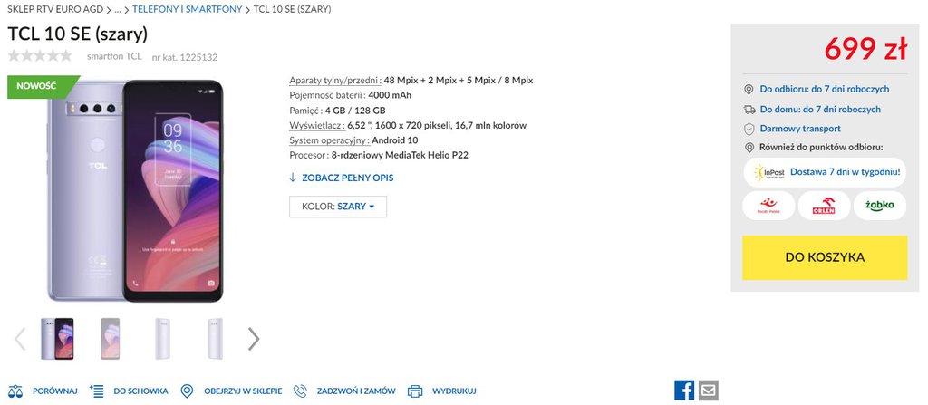 - Polska cena TCL 10 SE / dane RTV Euro AGD