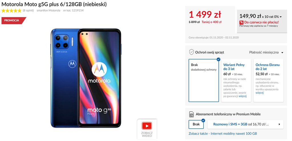 - Motorola Moto G 5G Plus – 1499 złotych (sprawdź ceny w innych sklepach),