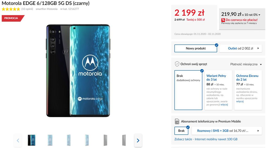 - Motorola Edge – 2199 złotych (sprawdź ceny w innych sklepach).