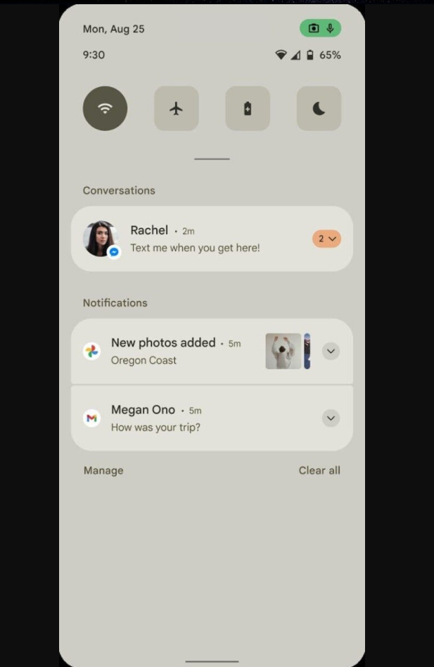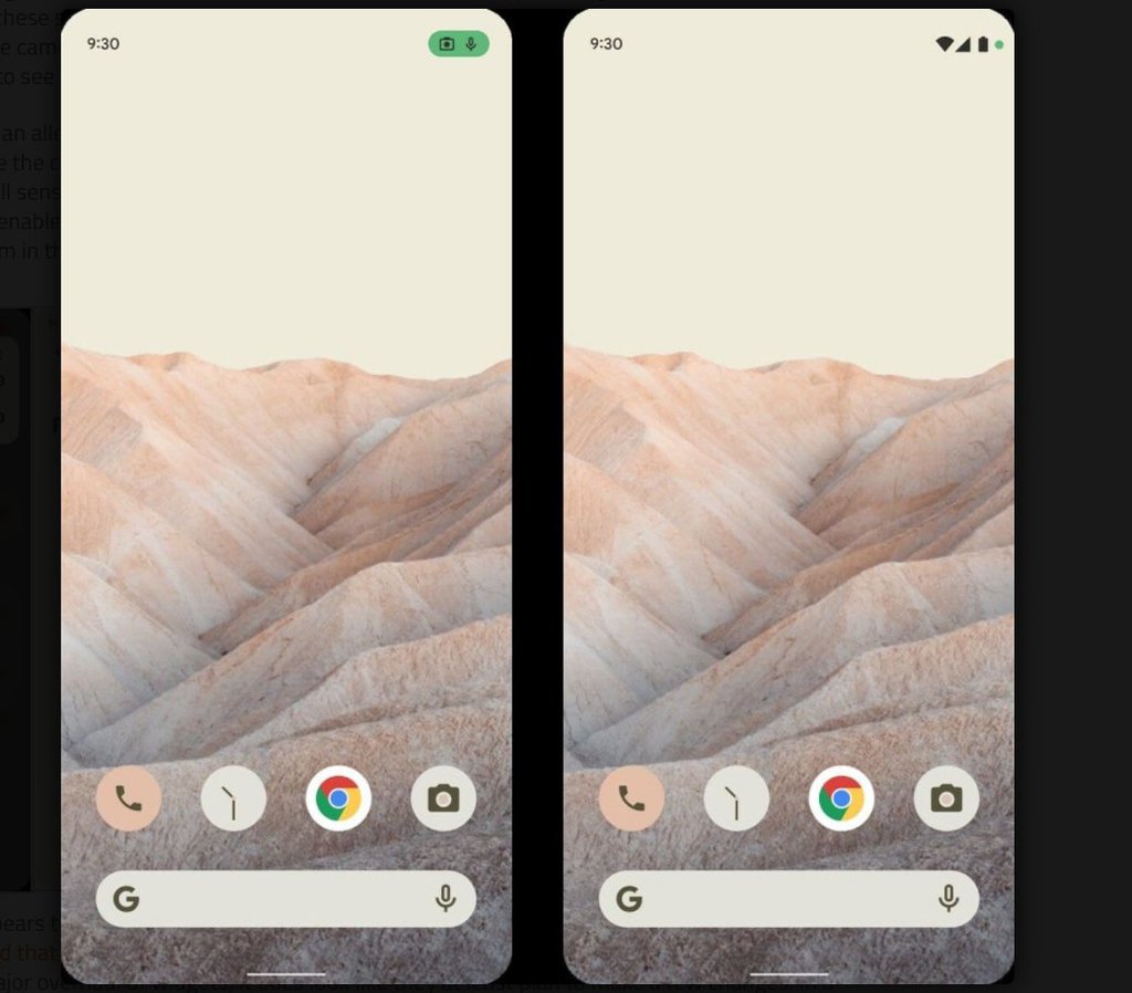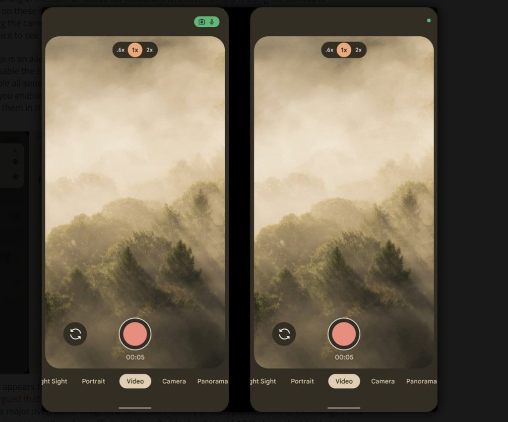 Na kolejnym zrzucie ekranu widzimy funkcję zapożyczoną z iOS, czyli powiadomienie o działaniu aparatu lub mikrofonu w formie symbolu w prawym górnym rogu. Fajna sprawa i dobrze, że każdy z producentów nie będzie musiał wprowadzać jej na własną rękę, a my dostaniemy ją od razu po aktualizacji (będzie to obowiązkowe dla wszystkich nakładek).