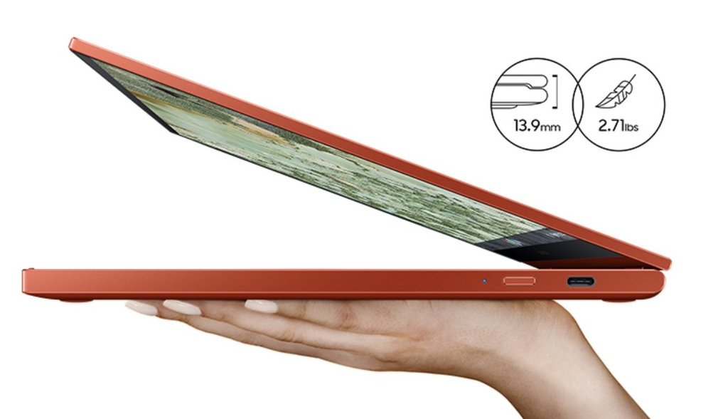 Powodami, dla których warto kupić nowego Galaxy, jest lekka obudowa (całość waży zaledwie 1,23 kg) oraz bateria na aż 13 godzin pracy. Wisienkami na torcie są dobry głośnik wraz ze slotem na kartę microSD opakowane w elegancką obudowę z ekranem odchylanym o 360º.