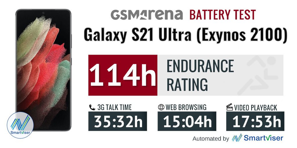 - Snapdragon 888 vs Exynos 2100 w Samsung Galaxy S21 Ultra – porównanie czasu pracy / fot. GSMArena