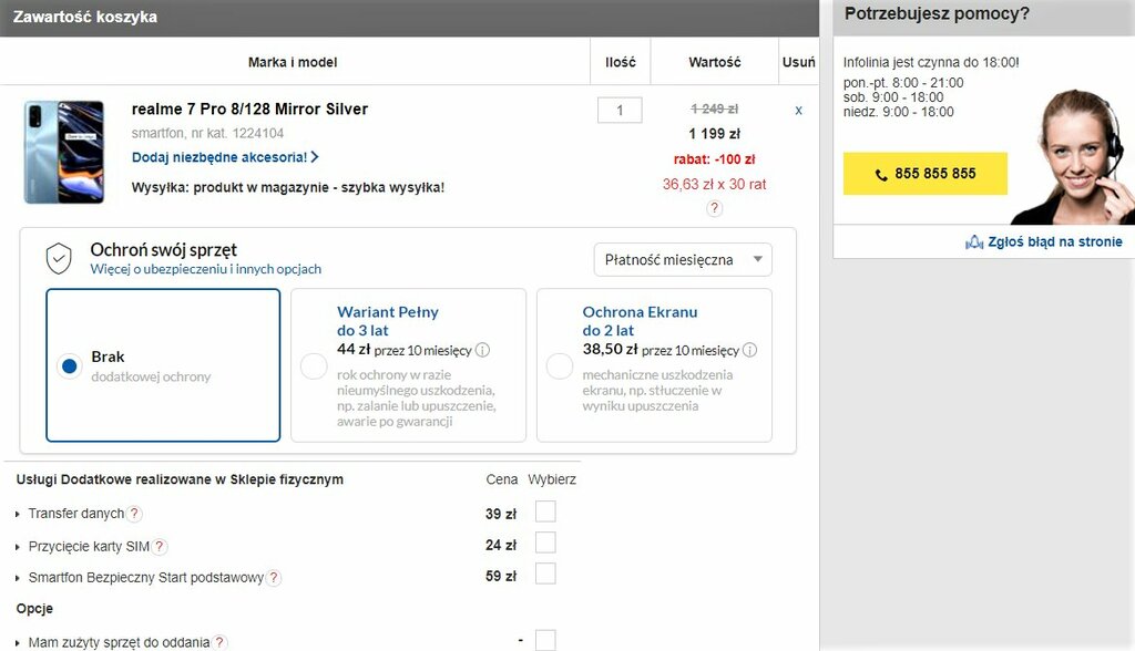 Dodatkowo cenę realme 7 Pro można obniżyć poprzez skorzystanie z oferty ratalnej 30×0%, z czego dwie spłaca sklep. Dzięki temu ostatecznie za smartfon zapłacisz 1025,74 złote.