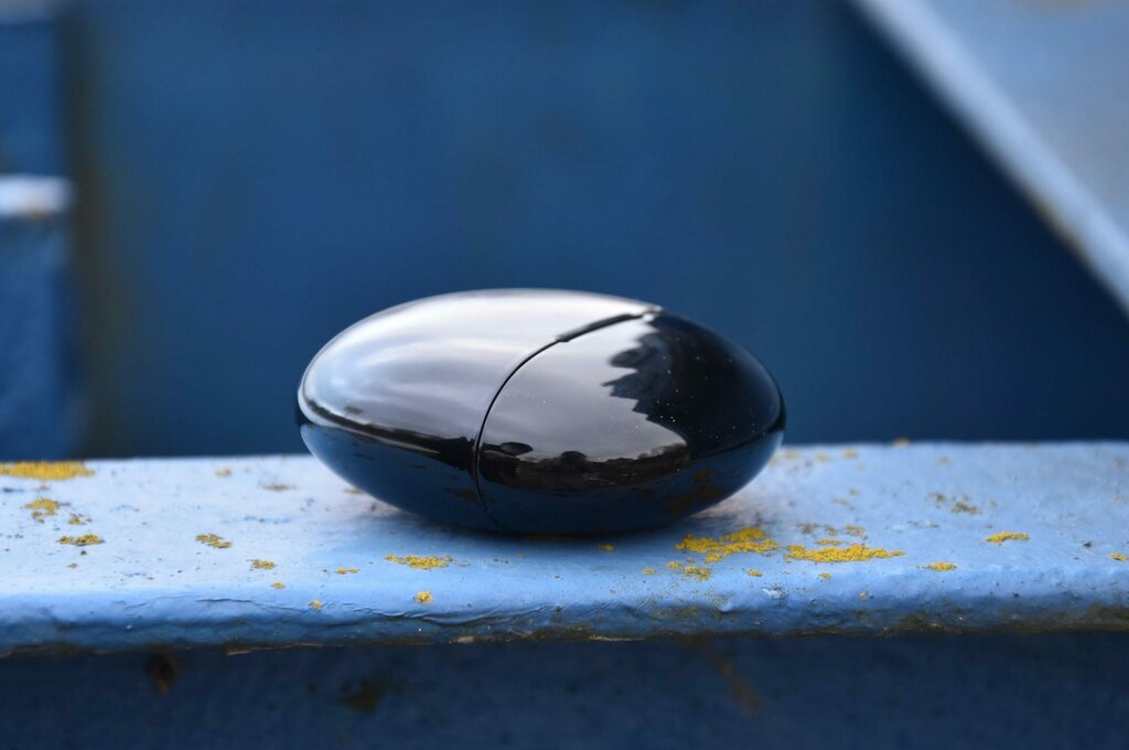 Mimo niewielkich rozmiarów i grubego wieczka łatwo wyłuskać z niego słuchawki, za co producentowi należą się spore brawa. Na froncie znajdziemy dyskretnie wkomponowany funkcyjny przycisk (używamy go do parowania słuchawek), na dole zaś nieosłonięte gniazdo USB-C.