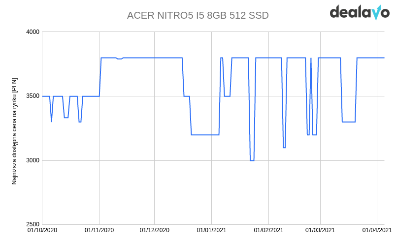 W przypadku wielu modeli faktycznie widzimy duże spadki cen w nowym roku lub w okolicach marca. Co ciekawe, dwa z 6 sprawdzanych laptopów zdrożały na początku kwietnia, nawet do poziomu cen sprzed listopadowych obniżek.