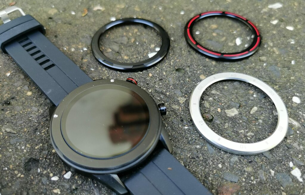 „Bezele” są cieniutką blaszką, która została pokryta równie niewielką ilością farby. Jeśli będziemy obchodzili się z nimi delikatnie, powinny długo zachować swój wygląd, jednak jeśli niezbyt przykładamy wagę do tego, jak użytkujemy smartwatch za 200 zł, to szybko wszystkie trzy ramki zaczną świecić tym samym, stalowym połyskiem.