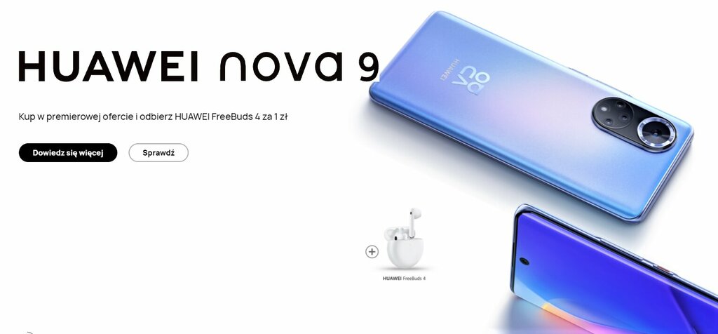 Jak widać, tanio nie jest i to delikatnie mówiąc. Pewnym pocieszeniem są prezenty dla pierwszych kupujących w przedsprzedaży: słuchawki FreeBuds 4i w przypadku Nova 8i i słuchawki FreeBuds 4 dla Nova 9. Ich aktualna rynkowa wartość to odpowiednio niecałe 300 złotych i niecałe 500 złotych.