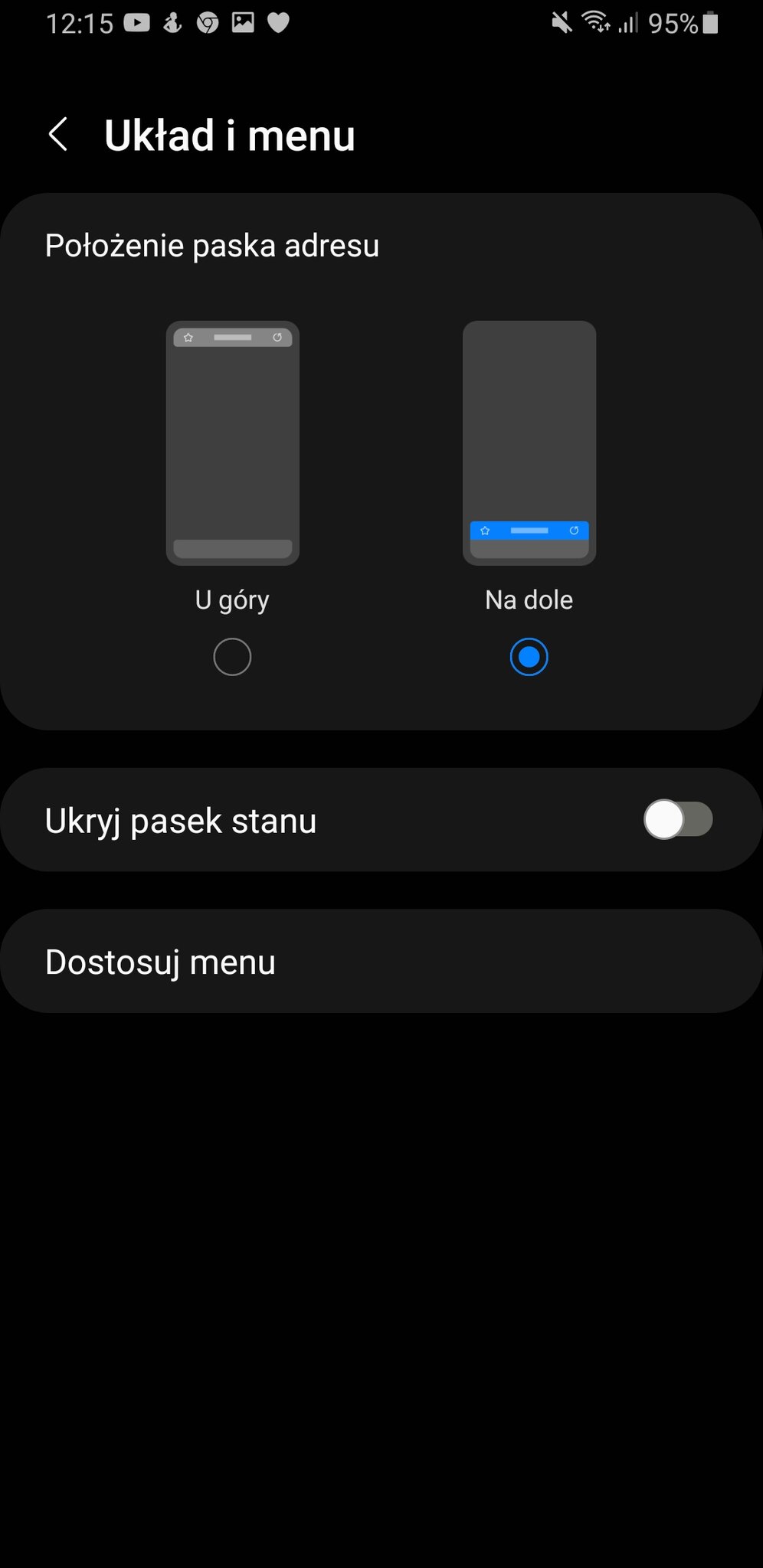 W Samsung Internet przeniesiesz pasek adresu na dół