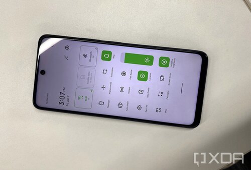 Pasek powiadomień prezentuje się nieco inaczej niż u konkurencji, ale nadal bardzo praktycznie – duże przyciski dają swobodny dostęp do WiFi oraz Bluetooth, a suwak po prawej stronie sprawdzi się podczas dostosowywania jasności. Wszystkie inne elementy również są na swoich miejscach.