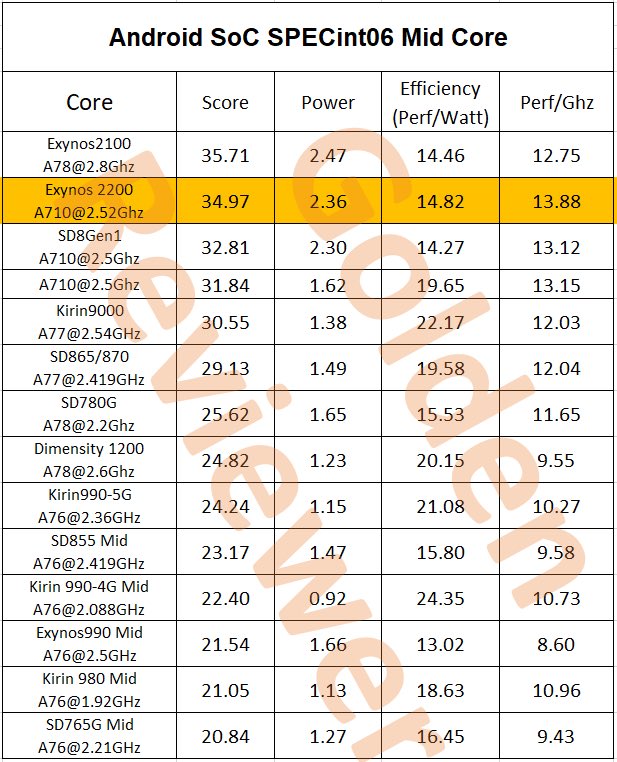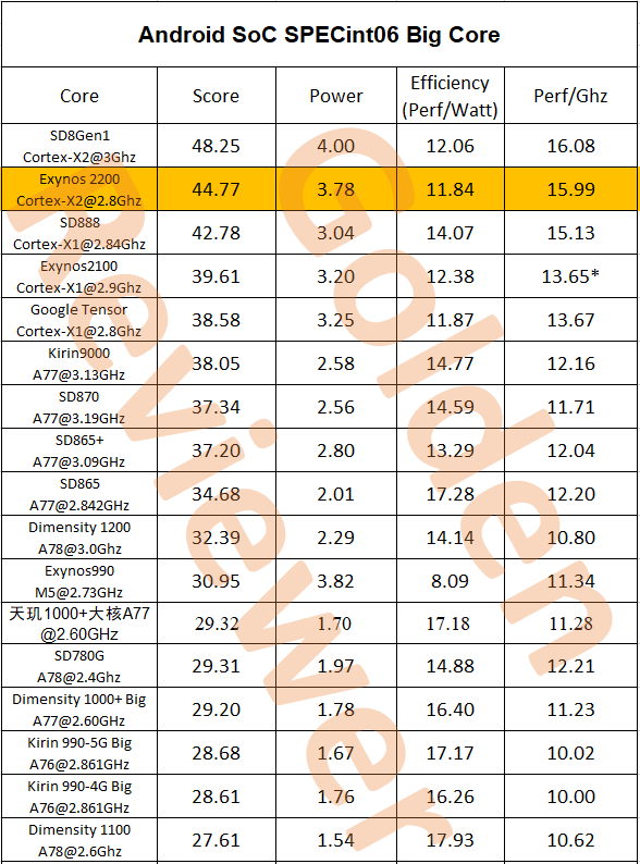 - Exynos 2200 vs Snapdragon 8 Gen 1 – porównanie CPU / fot. @Golden_Reviewer