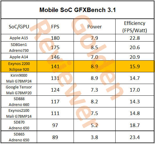 - Exynos 2200 vs Snapdragon 8 Gen 1 – porównanie GPU / fot. @Golden_Reviewer