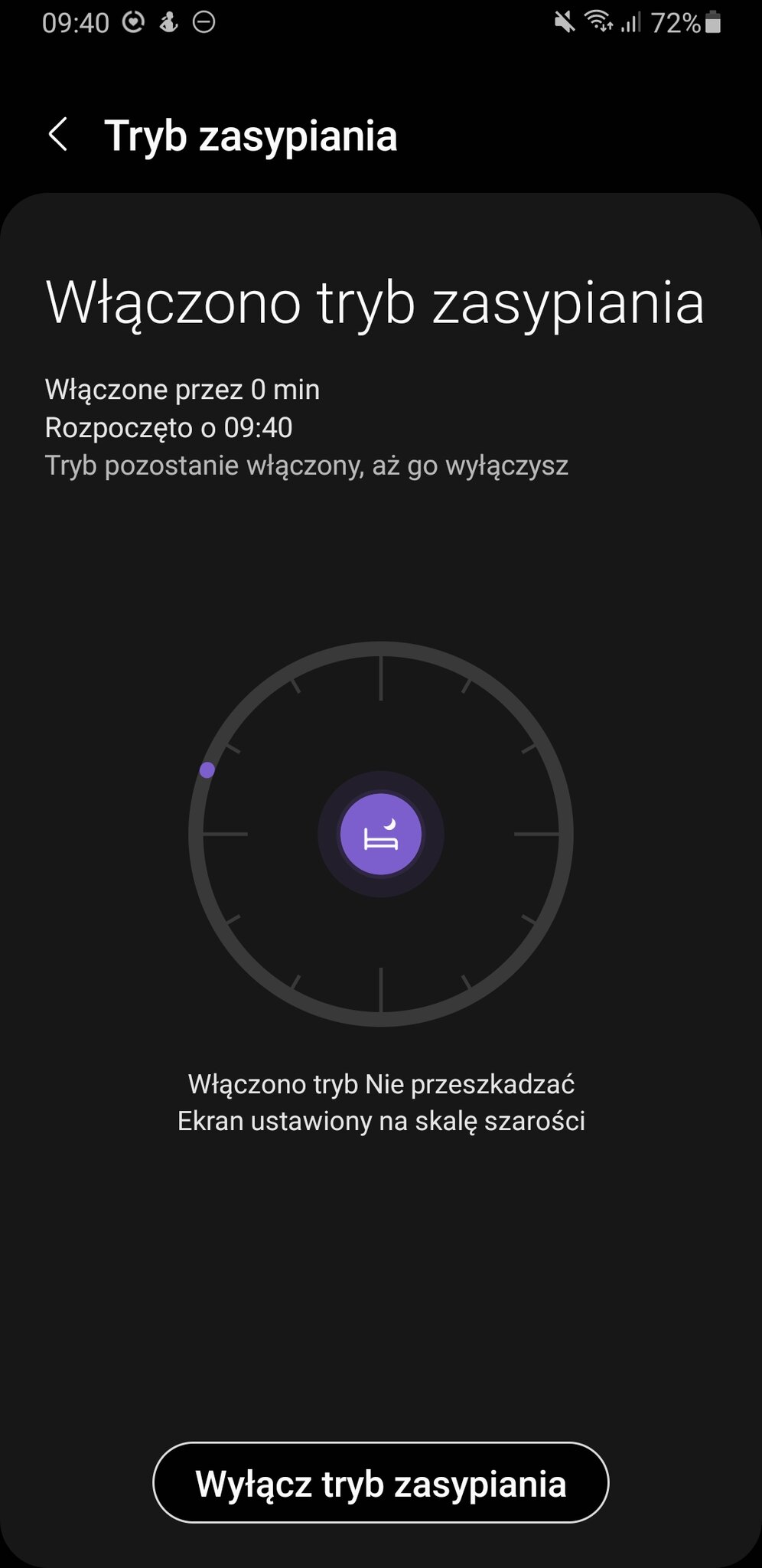 Nie jestem do końca pewny, ale Galaxy Note 9 najprawdopodobniej otrzymał także nową funkcję w ramach usługi Cyfrowego dobrostanu. Jest nią tryb zasypiania, który wyłącza powiadomienia, przyciemnia ekran i zmienia kolory na skalę szarości.