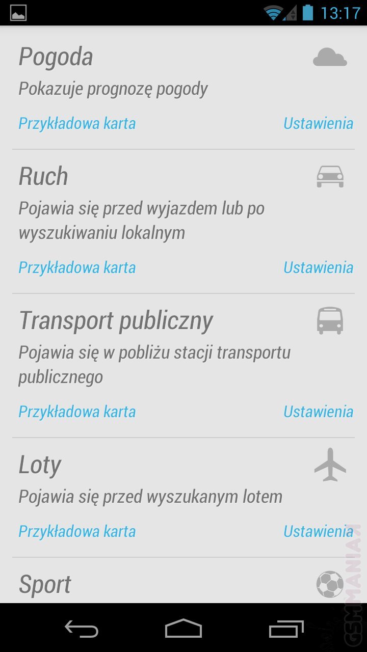 Moim zdaniem, zmiażdży Siri dzięki zastosowaniu dużo prostszej, bardziej logicznej filozofii, która nie zmusza mnie do pogadanek z moim telefonem. Google Now nie ma być kumplem a profesjonalnym źródłem informacji, które od razu są serwowane na przysłowiowej tacy. Mimo wszystko, jak dla mnie usługa znajduje się w fazie beta. Pomijając kwestię ekranu blokady, trudno się do niej dostać, zabrakło mi też animowanej tapety, która wyświetlałaby te wszystkie dane, które są już teraz dostępne w ramach Google Now. Cały czas nie udało mi się rozgryźć, w jaki sposób można edytować ulubione drużyny piłkarskie w zakładce sport. Wkrótce rozpoczyna się Liga Angielska i chciałbym wiedzieć, jaką różnicą bramek wygrał Liverpool.