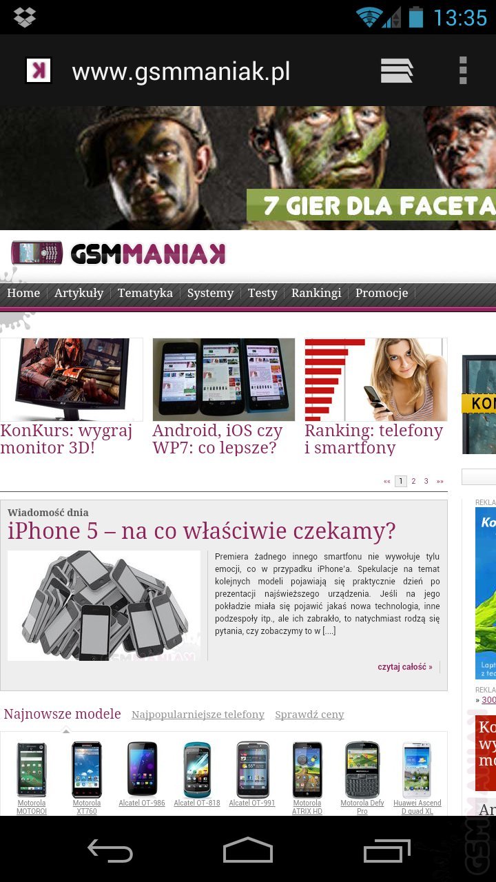 Pozwólcie, że skupię się zwłaszcza na przeglądarce. Otóż dostała ona niezłego kopa i nie przejawia już kłopotów z wyświetlaniem niektórych treści. Całość działa – moim zdaniem – odrobinę szybciej, jednak z całą pewnością ilość zmian widocznych gołym okiem nie jest zbyt duża. Chwali się stabilniejsze trzymanie sygnału WiFi w miejscach o słabym zasięgu.