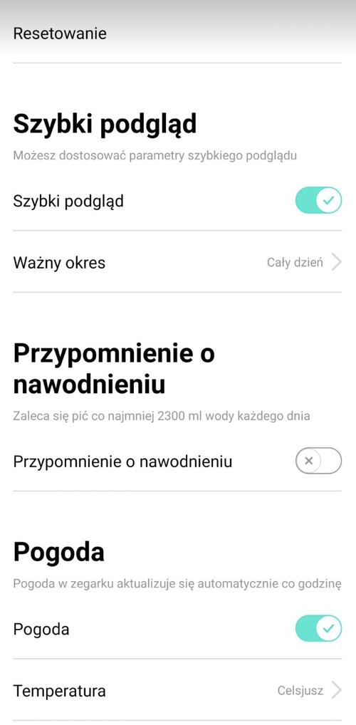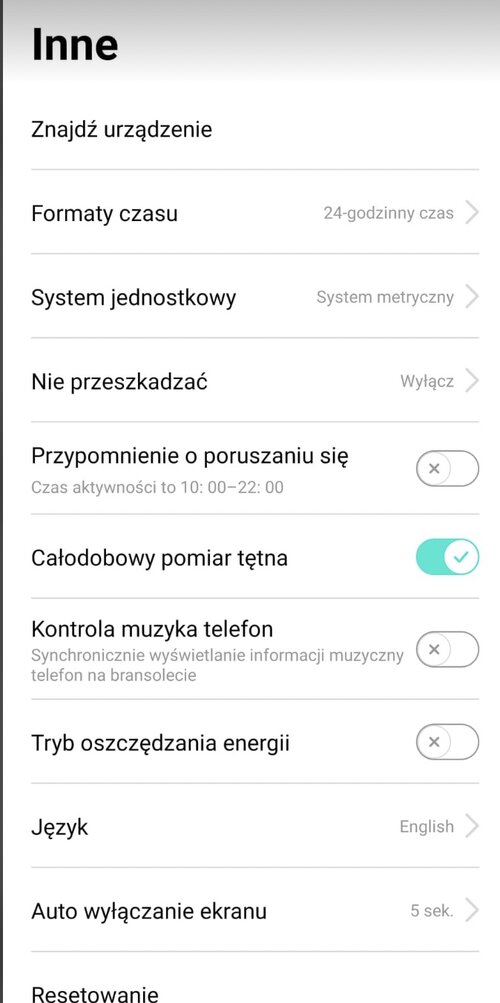 Kilka szybkich uwag na temat systemu: nie da się kontrolować siły wibracji (jest tylko opcja On/Off), jasność wyświetlacza można ustawić na 5 sposobów, stuknięcie w główny ekran pozwala zmienić tarczę, a powiadomienia obsługują polskie znaki (ale nie emoji).