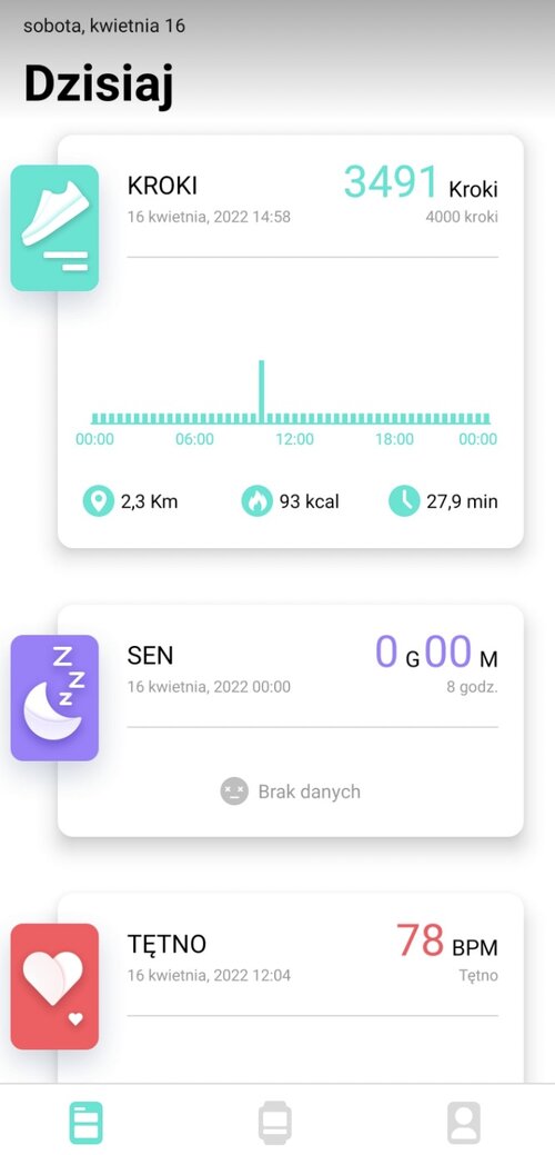 Określanie jakości snu to dla mnie czysta abstrakcja, gdyż zegarek próbuje zmierzyć poziom wypoczynku na podstawie pomiarów innych sensorów, przetwarzając je tak, by otrzymać fazy snu – ten tryb to ciekawostka, która ma niewiele wspólnego z rzeczywistością.