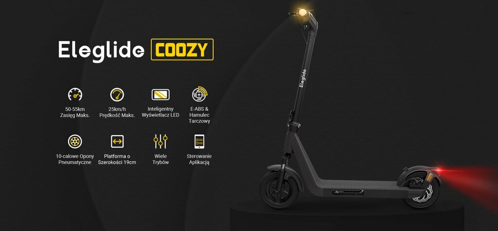 Hulajnoga Eleglide Coozy dostępna jest w sklepie geekbuying.pl w świetnej cenie 2599 zł. Warunkiem uzyskania tej ceny jest wpisanie kodu rabatowego: ELECOOZY.