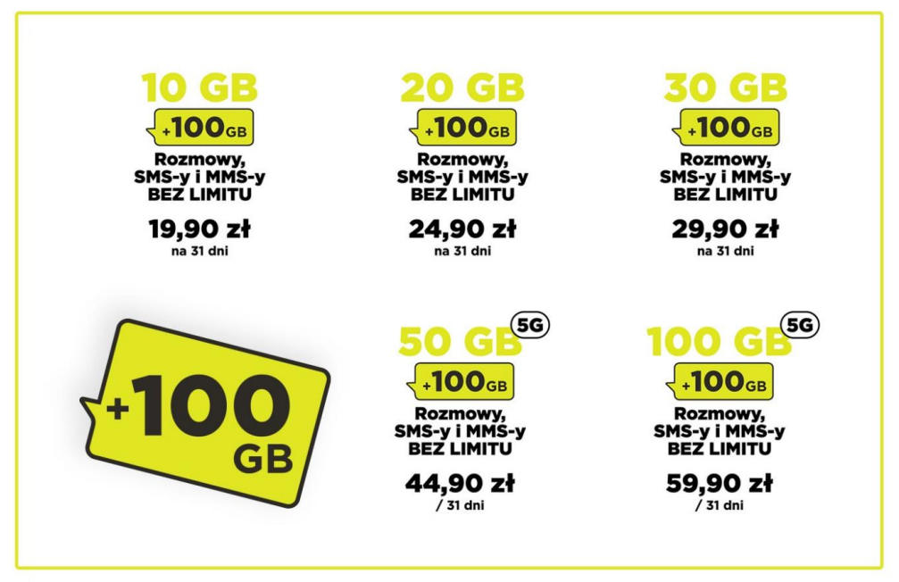 - Niewyczerpalne Wszystko 100 GB z 5G za 59,90 zł + 100 GB.