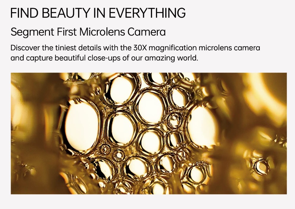 Wyspa aparatów wyposażona jest w trzy kamerki z diodą doświetlającą. Dostrzec można także napis AI, co świadczy o algorytmach sztucznej inteligencji. Co więcej, aparat z mikrosoczewkami otrzyma 30-krotne powiększenie, a zdjęcia miałyby prezentować się jak poniżej (oczywiście jest to zabieg marketingowy).