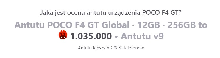 Opis trzeba zacząć od cechy najważniejszej. W POCO F4 GT jest to wydajność. Snapdragon 8 Gen 1 steruje mocą obliczeniową. Wielozadaniowość układu napędza 8 GB RAM typu LPDDR5, co pozwala osiągnąć ponad 1 000 000 punktów w benchmarku AnTuTu. Całkiem sporo nawet obecnie!