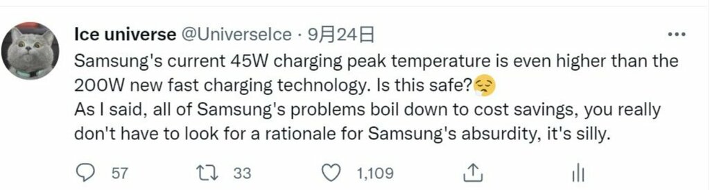 Na koniec wypada mi odnieść się do słów IceUniverse. Zauważa on słusznie, że najwyższa temperatura podczas ładowania 45 W ładowarką Samsunga jest wyższa od tych, które pojawiają się przy użyciu… 200 W. Jeśli ktoś mi powie, że to nie jest cięcie kosztów, to… jego sprawa, każdy może się mylić.