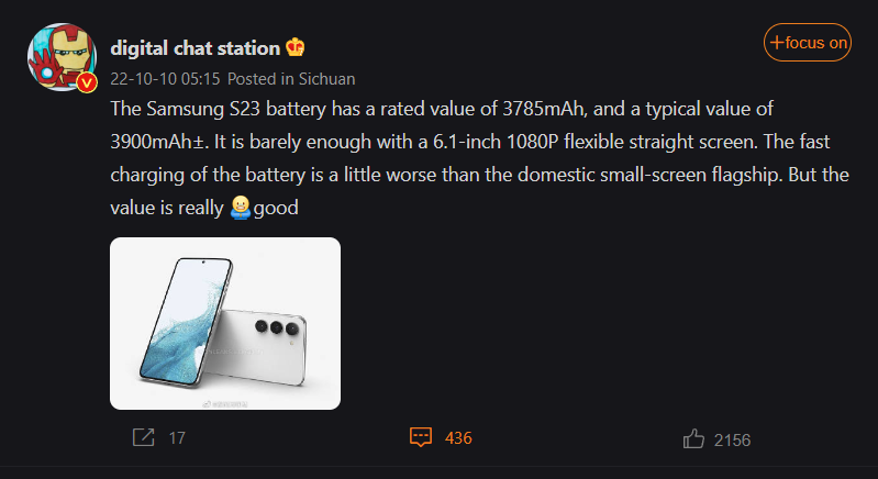 Przeciek wspomina również o tym, że Galaxy S23 otrzyma ekran 6,1″ w rozdzielczości FHD+, a ładowanie, mimo że nie najszybsze w swojej kategorii, to będzie po prostu bardzo dobre. Czyżby Samsung w końcu przemyślał kwestię szybszego ładowania swoich smartfonów?