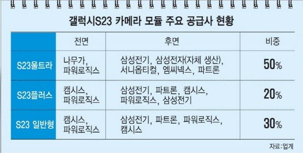 Z zastrzeżeniem, że udział chińskiego Sunny Optical znacznie wzrośnie dzięki zwiększonej produkcji najwyższej klasy produktu — Galaxy S23 Ultra. Zmniejszy się za to udział firmy CoAsia Electronics.