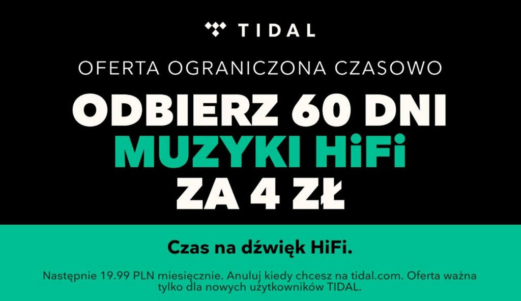 To jednak niejedyne grudniowe streamingowe promocje. Bezpośredni konkurent Spotify, czyli TIDAL, ogłasza właśnie akcję, w ramach której za dwa miesiące korzystania z wariantu usługi TIDAL HiFi zapłacimy jedynie 4 złote.