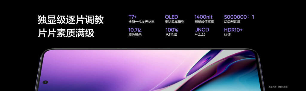 Nikogo nie powinien zawieść ekran realme GT Neo 5. Dostajemy bowiem 6,74-calową matrycę OLED o rozdzielczości 1,5K (2772 × 1240 pikseli), odświeżaniu do 144 Hz, odświeżaniem dotyku 1500 Hz, jasnością do 1400 nitów, PMW 2160 Hz oraz wsparciem dla HDR10+. Firma podkreśla, że wyświetlacz ma płaskie krawędzie.