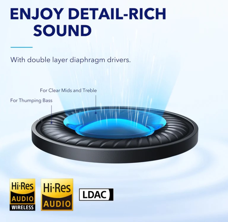Soundcore Space Q45 pozwalają także pozostać w kontakcie z dwoma urządzeniami dzięki połączeniu wielopunktowemu. Funkcja przydatna jest podczas przełączania się między muzyką, a rozmową.