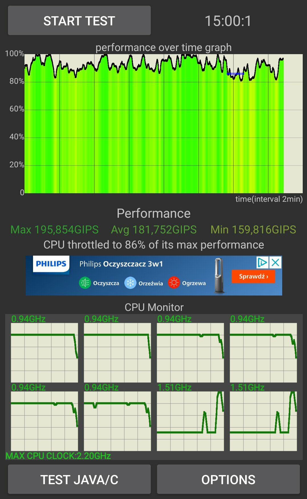 Czy da się sprawić, żeby Sony Xperia 10 V stała się gorąca, a procesor zaczął zwalniać? Pewnie się da (na przykład wsadzając ją do piekarnika). Mam dość mieszane uczucia co do wyboru procesora. Z jednej strony Snapdragon 695 w telefonie za ponad 2 tysiące złotych brzmi śmiesznie. Z drugiej – nie ma tu throttlingu, obudowa jest chłodna, a praca – całkiem sprawna i bez przestojów. Chyba jednak nie będę się czepiać.