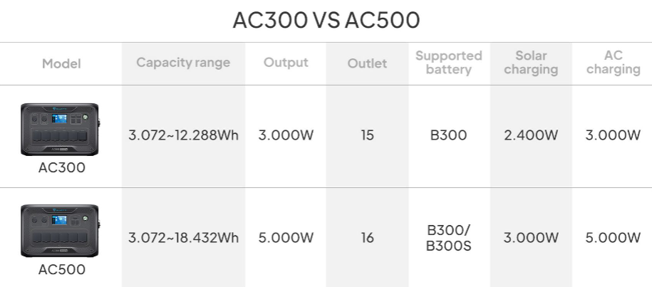 Bluetti AC300 AC500 - porównanie generatorów / fot. producenta