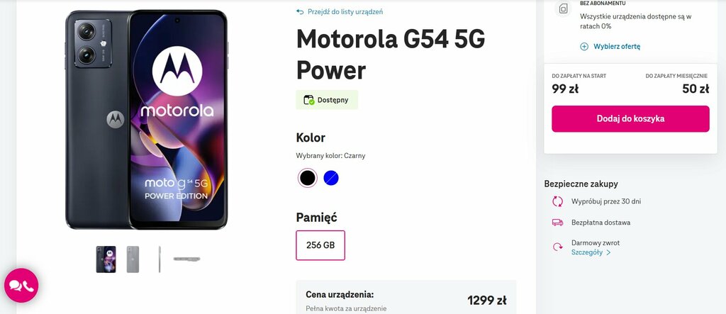 Jeśli zaś zamiast 12 GB RAM i 6000 mAh wystarczy Ci 8 GB RAM, 5000 mAh i ponad 300 zł w kieszeni, to na niemieckim Amazonie standardową Moto G54 5G kupisz za 199 euro/ok. 980 złotych.