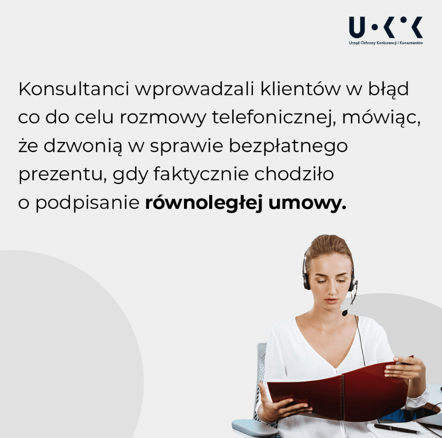 Wątpliwości Urzędu wzbudziły telefoniczne rozmowy sprzedażowe, w których klientom sugerowano, że konsumenci otrzymają bezpłatny prezent.