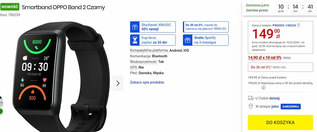 Oppo Watch Free już w momencie premiery zrobił na mnie bardzo dobre wrażenie. Potwierdziły je testy, a dzisiejsza promocja pozwala kupić go za ułamek premierowej ceny. W Media Expert znajdziesz go za 149 złotych. Rabat sam powinien naliczyć się w koszyku. Jeśli tak się nie stanie, skorzystaj z kodu rabatowego PW0202-140224.