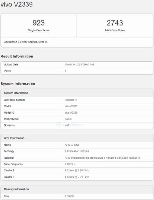 Wróćmy jednak do vivo V30e. Nadchodzący smartfon uzyskał w teście jednego rdzenia 923 pkt, a w teście wielordzeniowym wykręcił 2753 pkt. Warto pamiętać ponadto o obecności 8 GB RAM typu LPDDR4X oraz systemie Android 14 z nakładką Funtouch OS, co sugeruje globalną dostępność modelu.