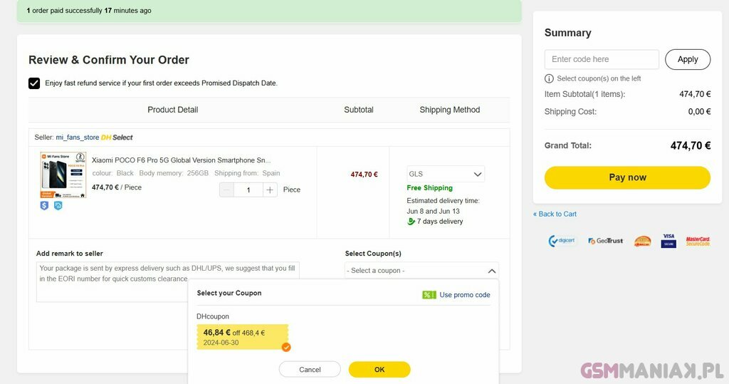 Mi Fans Store na platformie sprzedażowej DHGate sprzedaje teraz POCO F6 i POCO F6 Pro w następujących wariantach i cenach: