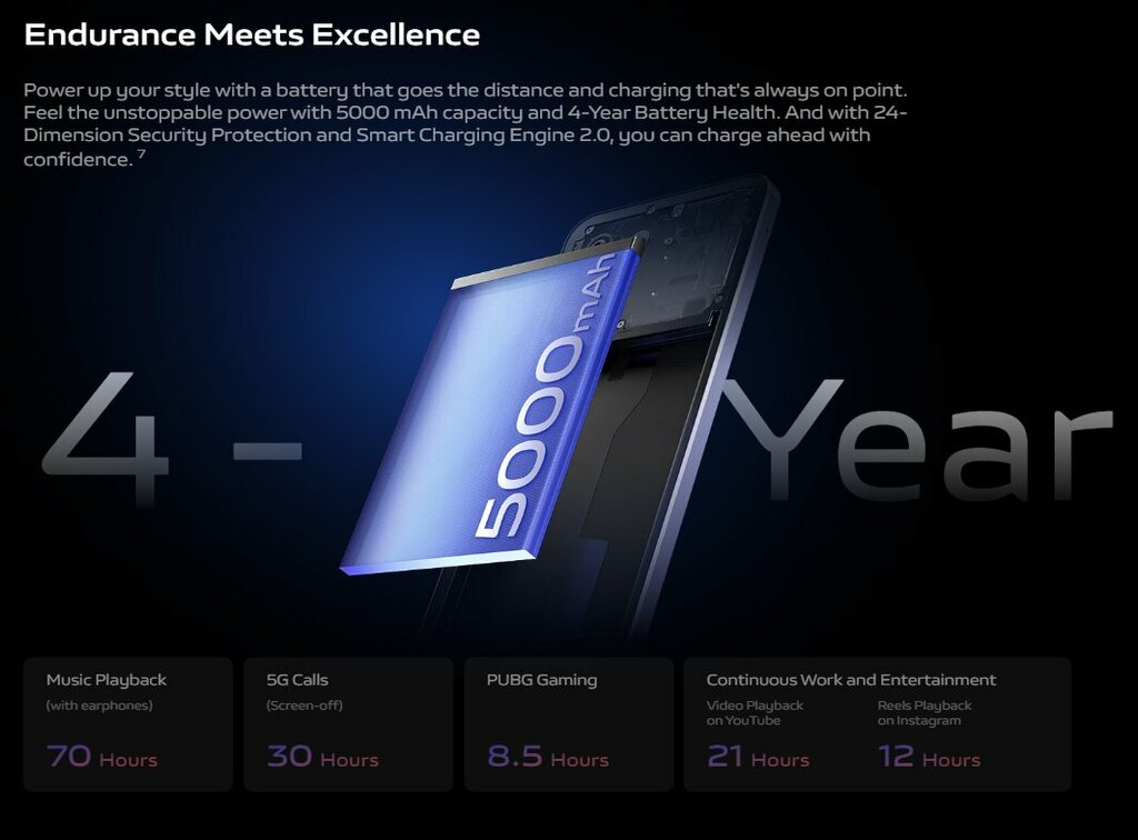 Do tej pory było dość nisko-półkowo. Jednak najważniejsza jest bateria. Nie mam na myśli pojemności 5000 mah z ładowaniem 18 W, lecz zupełnie coś innego. Producent deklaruje 4-letnią żywotność akumulatora, którą wspiera Smart Charging Engine 2.0. Praktyka rozstrzygnie.
