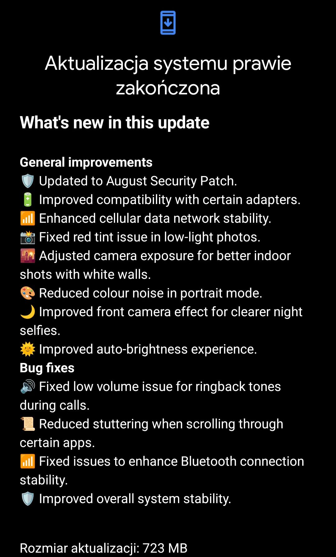 Reszta poprawek w aktualizacji to stabilność, płynność działania i pozbycie się lagów w aplikacjach. To będę sprawdzać w kolejnych tygodniach. Cieszy też poprawa stabilności połączenia Bluetooth.